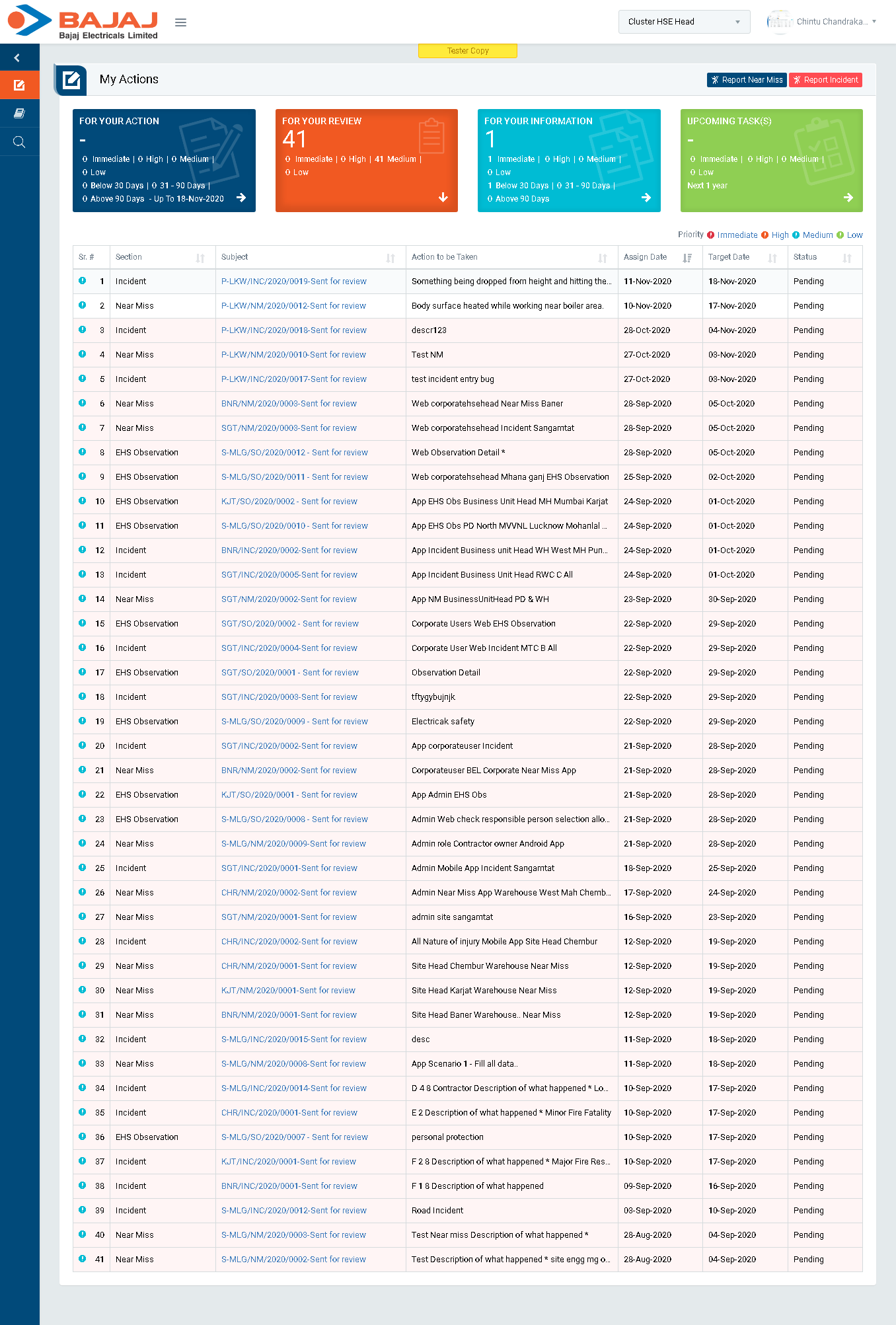 - Login as Cluster HSE Head and go to My Action screen (Image 1B)