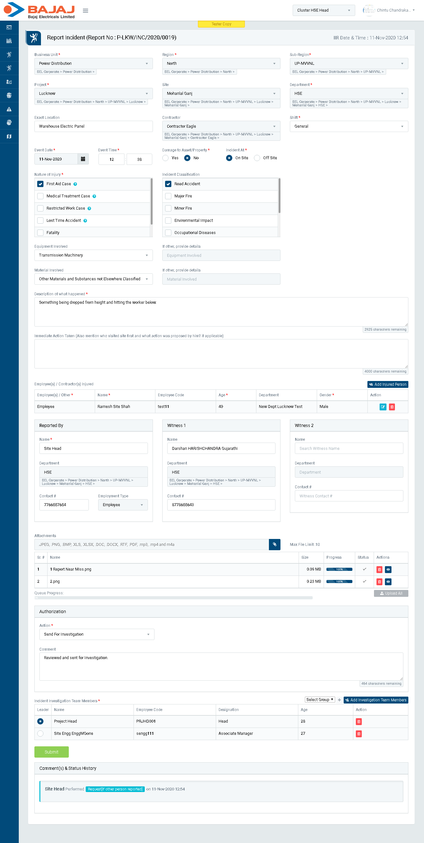 button is clicked. The group is predefined where number of users are added to create a group. - Click Submit button to save the details and send the incident report for investigation to investigation team members.
