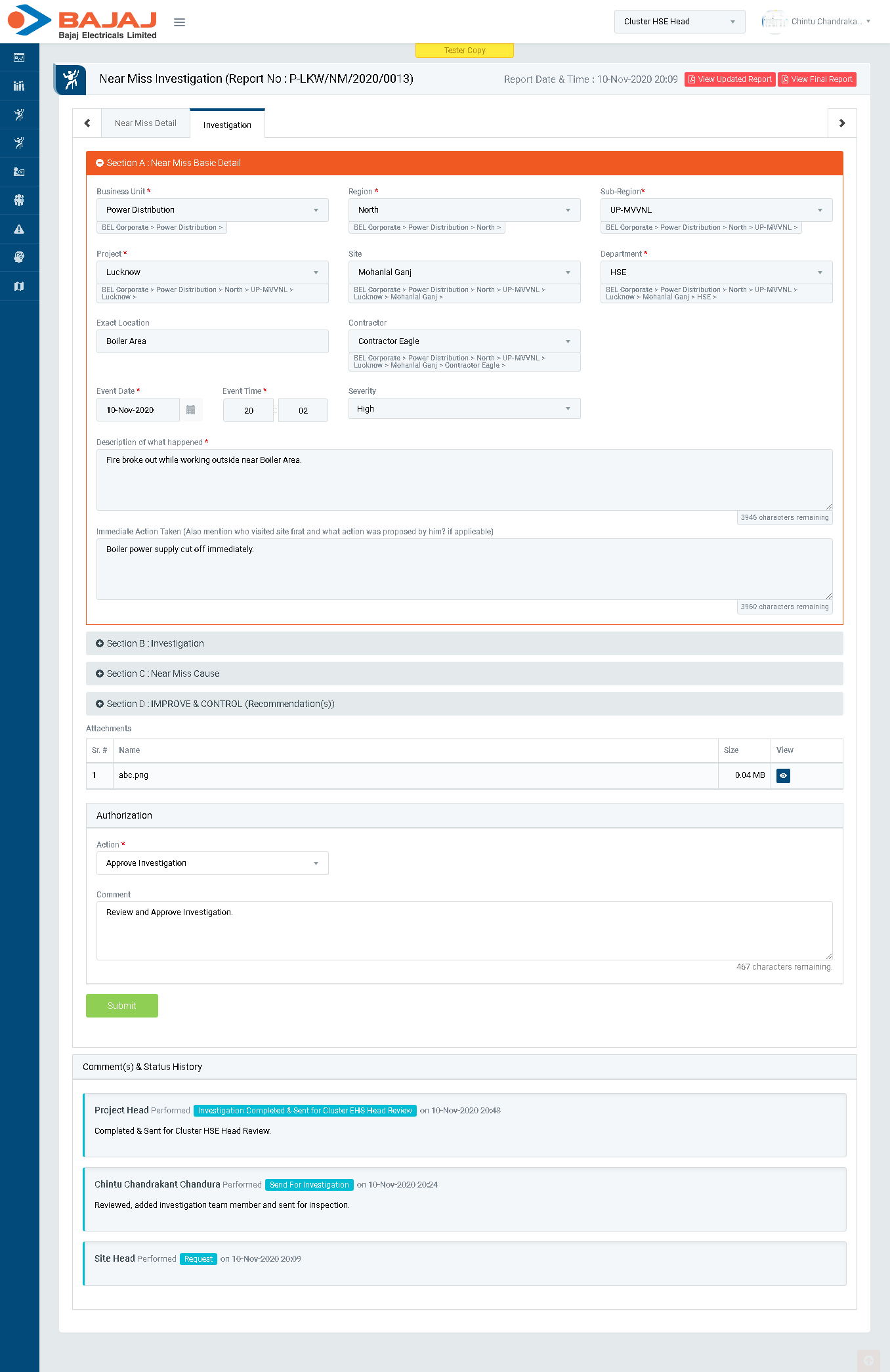 - Login as Cluster HSE Head and go to My Action screen (Image 2F)