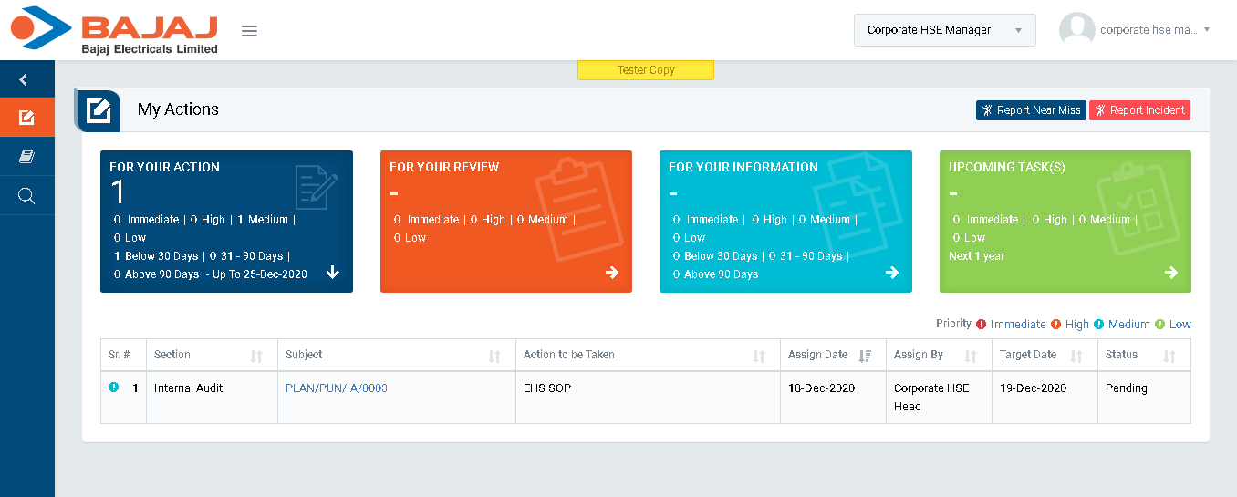 - Login as Auditor and go to My Tasks | My Actions (Image 5A).
