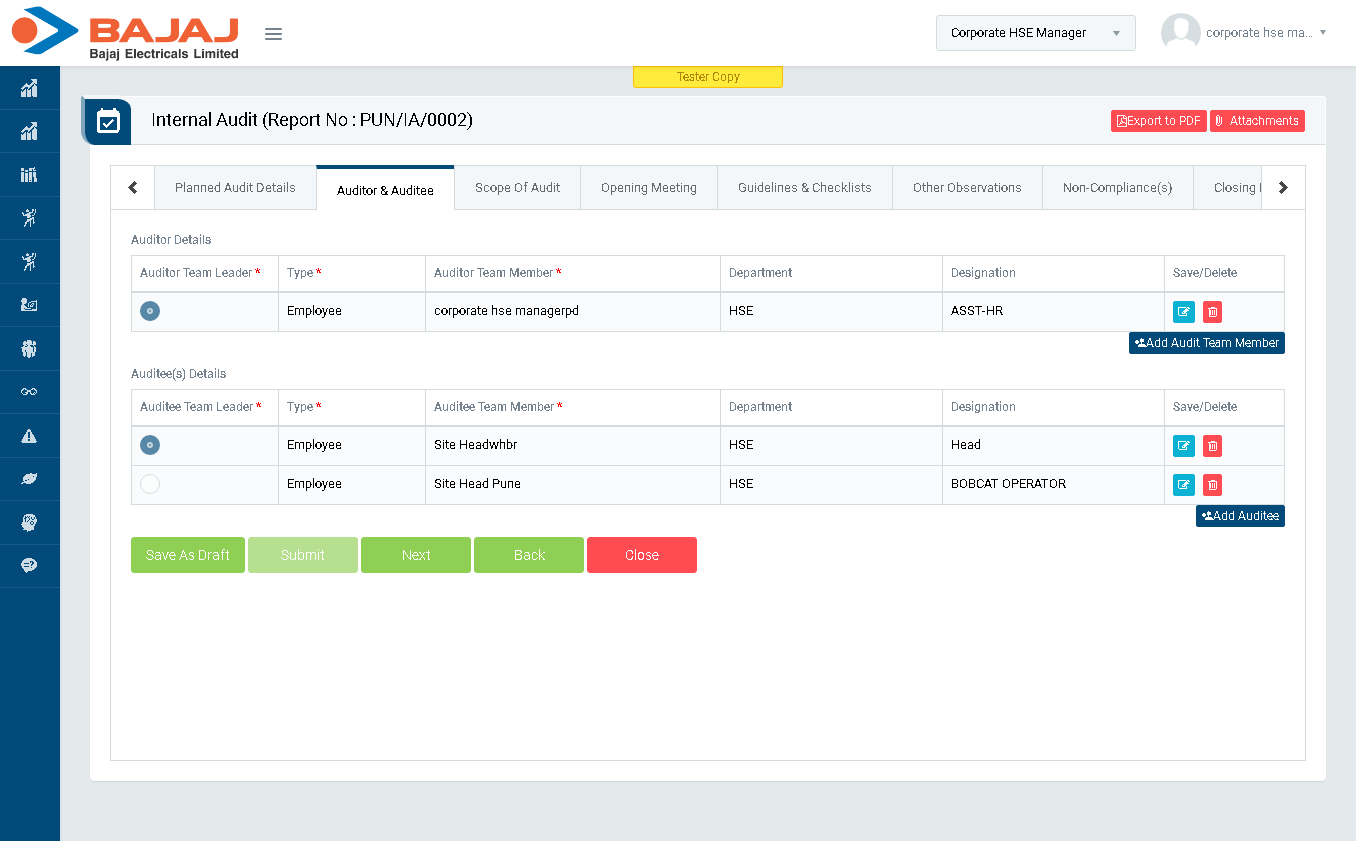 - In “Auditor & Auditee(s)” section add/remove Auditor details and click “Next” button to go to “Scope Of Audit” section.(Image 5D)