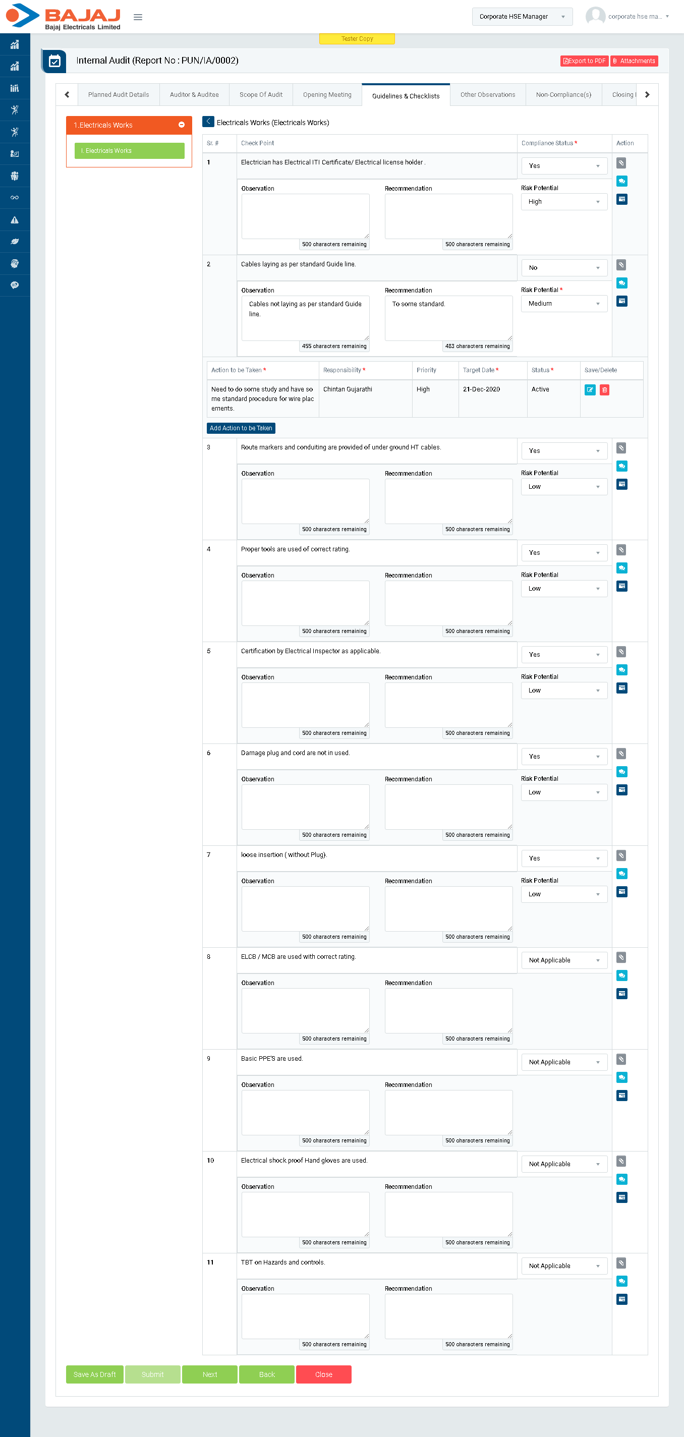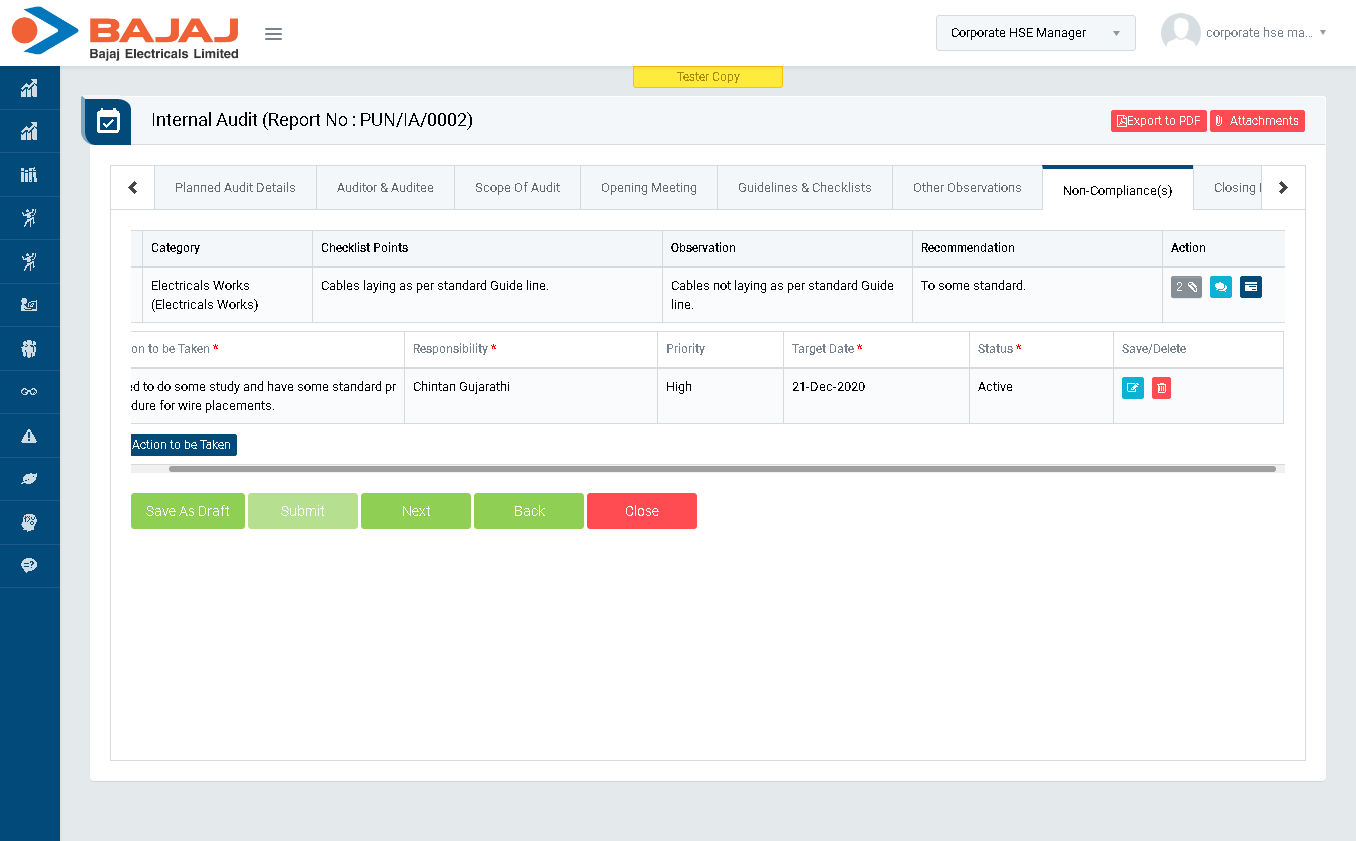 - Also, for Non-compliance it is mandatory to Add Task.