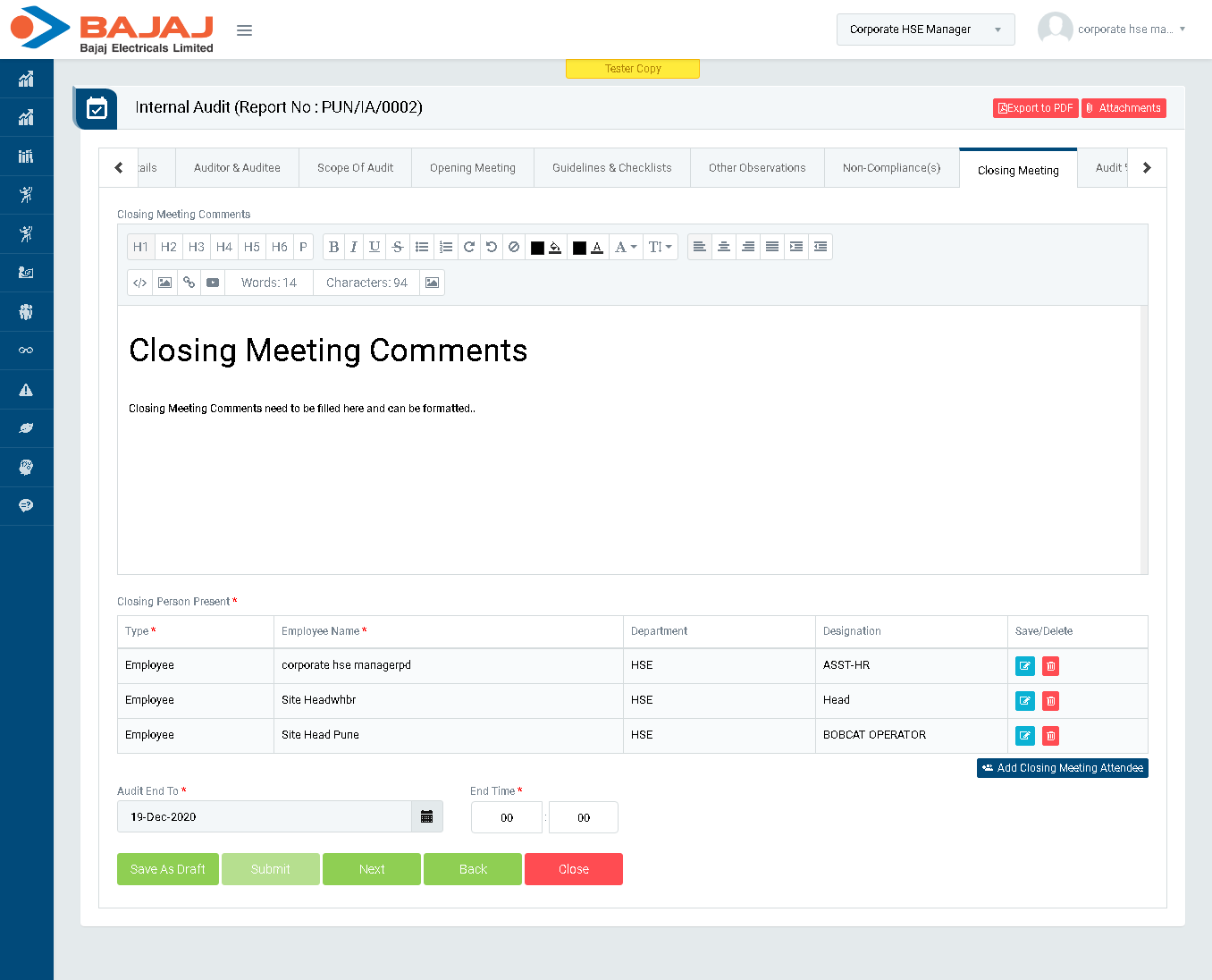 - Click “Next” button to go to “Closing Meeting Comments” section.(Image 5I)