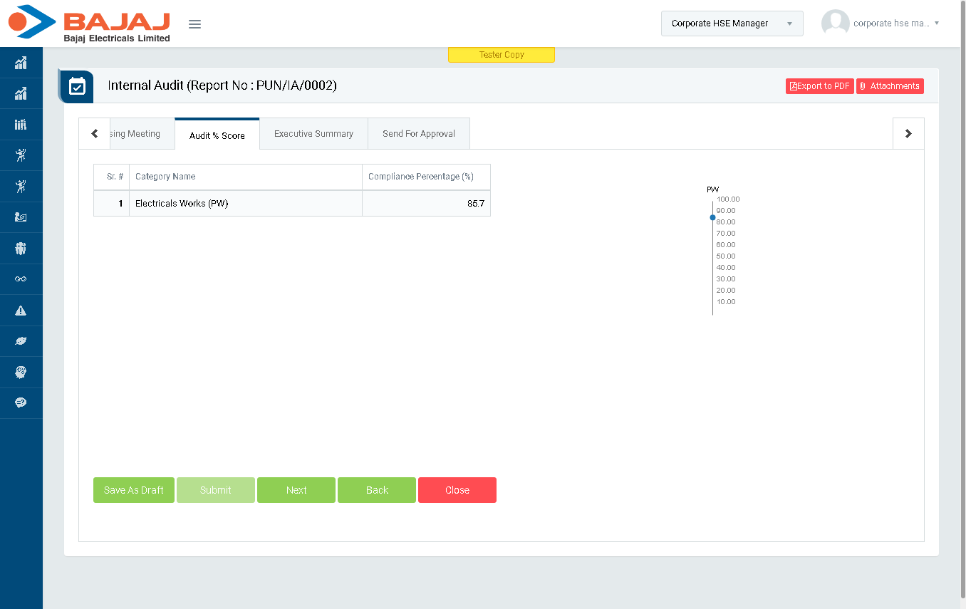 - In “Audit % Score” section verify Compliance Percentage.