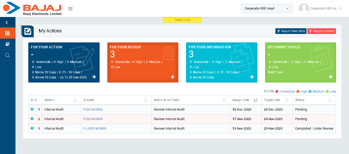 - Login as Auditor and go to My Tasks | My Actions (Image 5M).
