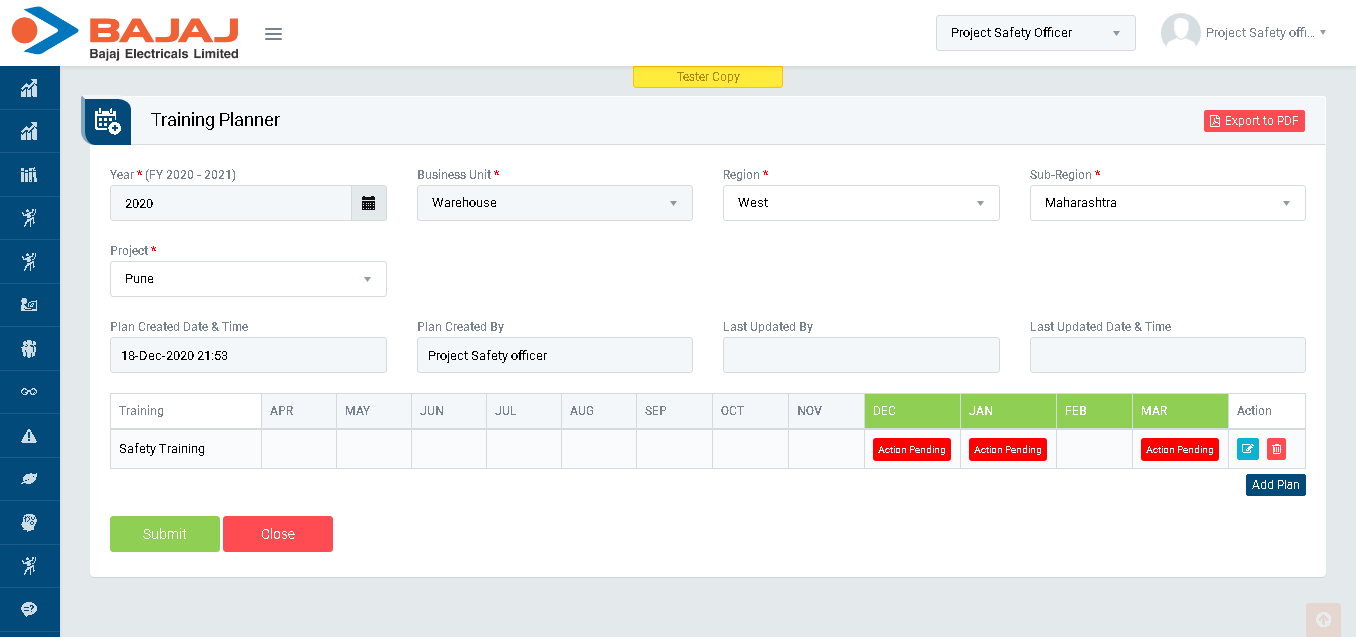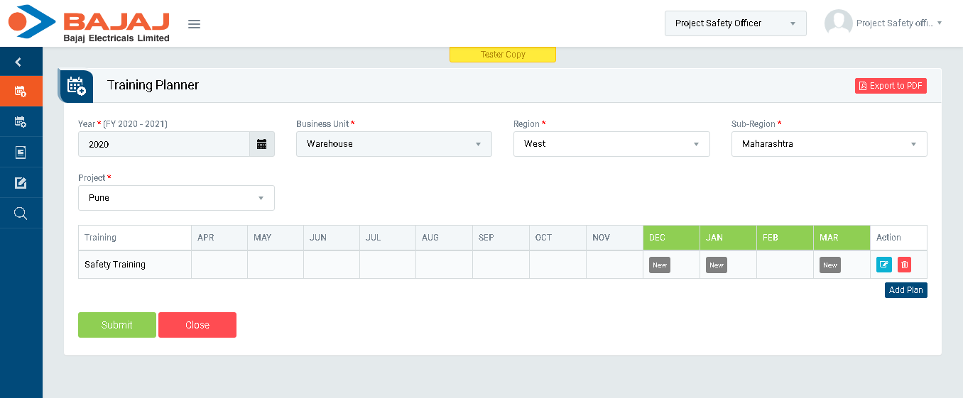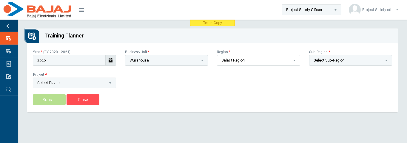 - Login as Initiator and go to Training Management | Training Planner screen. (Image 6)