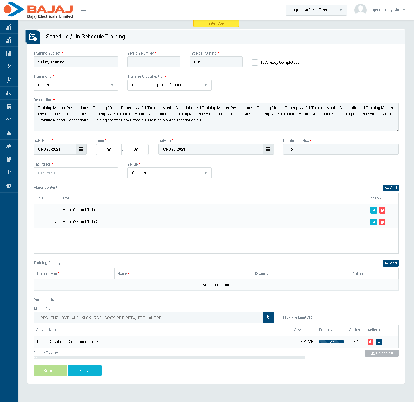 - This will be seen to Trainer, Facilitator, Initiator and participants in My Training in Read only.