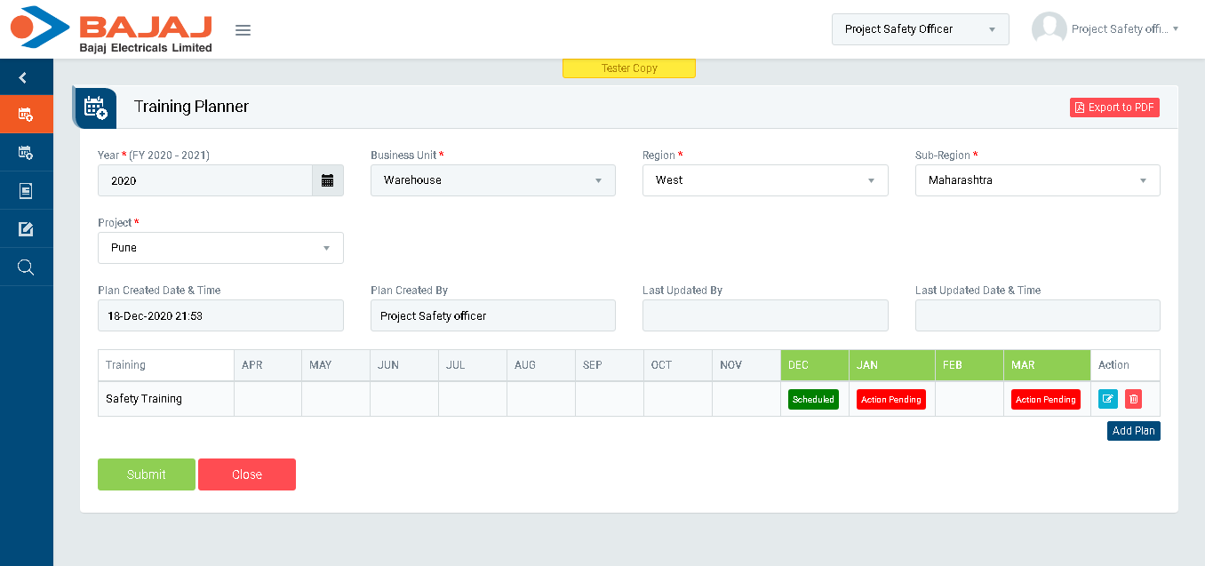 - Login as Initiator and go to Training Management | Training Planner screen.