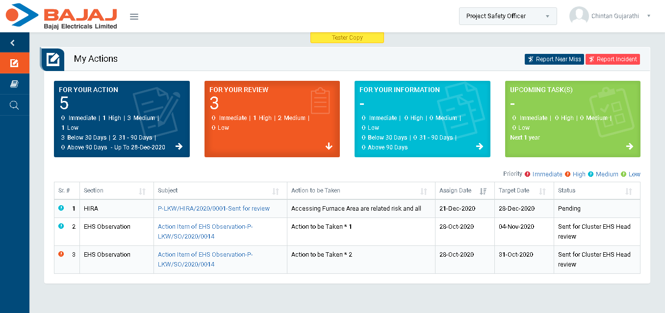 - Login as Project Safety Officer and go to My Tasks | My Actions screen. (Image 7C)